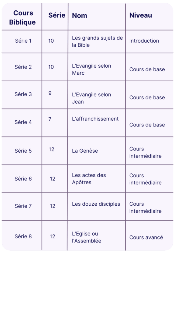Notre vision : enseigner et apprendre la parole de Dieu en profondeur : » … Des peuples s’y rendront en foule, et diront: Venez, et montons à la montagne de l’Éternel, A la maison du Dieu de Jacob, Afin qu’il nous enseigne ses voies, Et que nous marchions dans ses sentiers. Car de Sion sortira la loi, Et de Jérusalem la parole de l’Éternel. » Esaïe 2 : 2-3